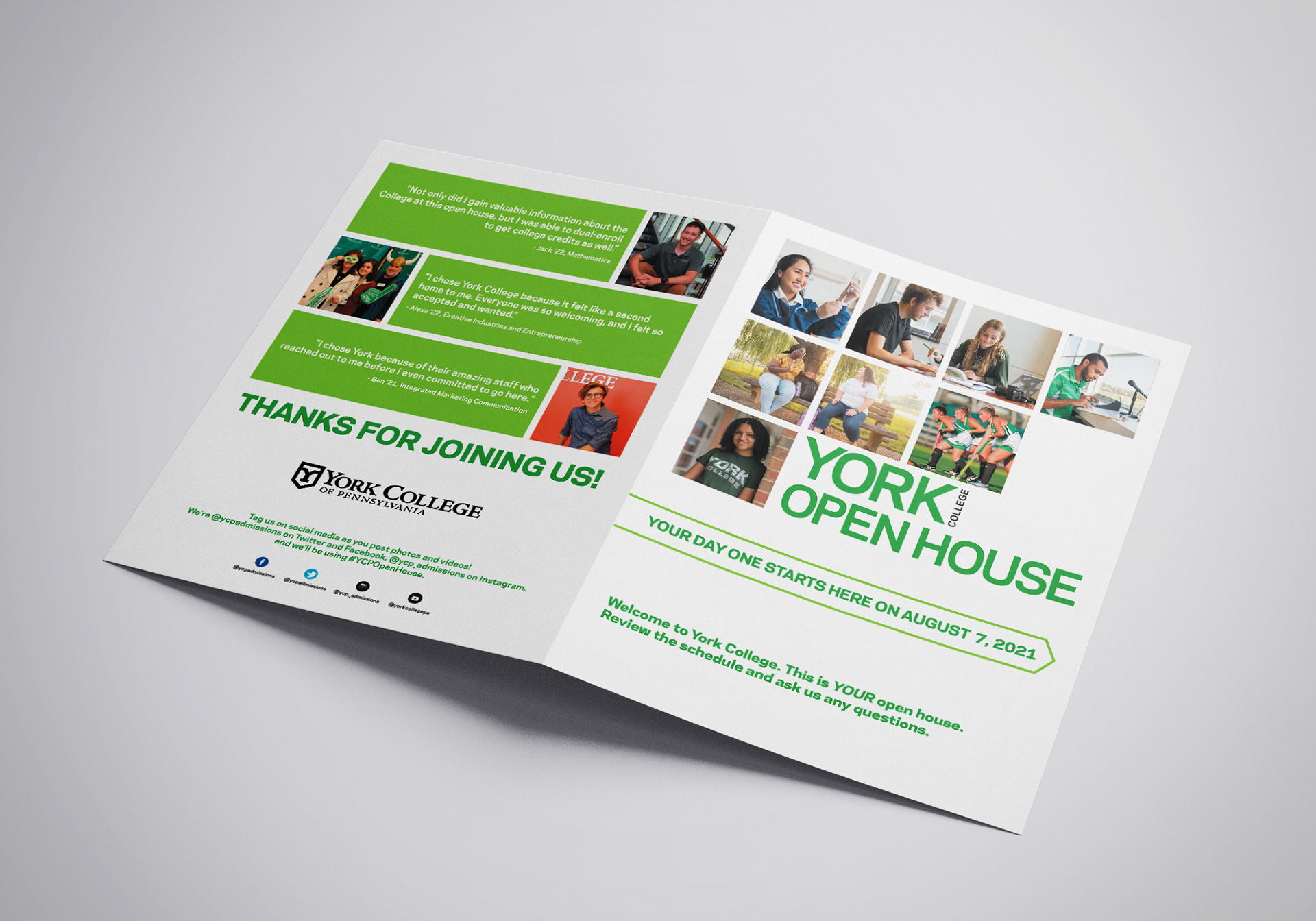 A program for an Open House at York College of Pennsylvania in August of 2021