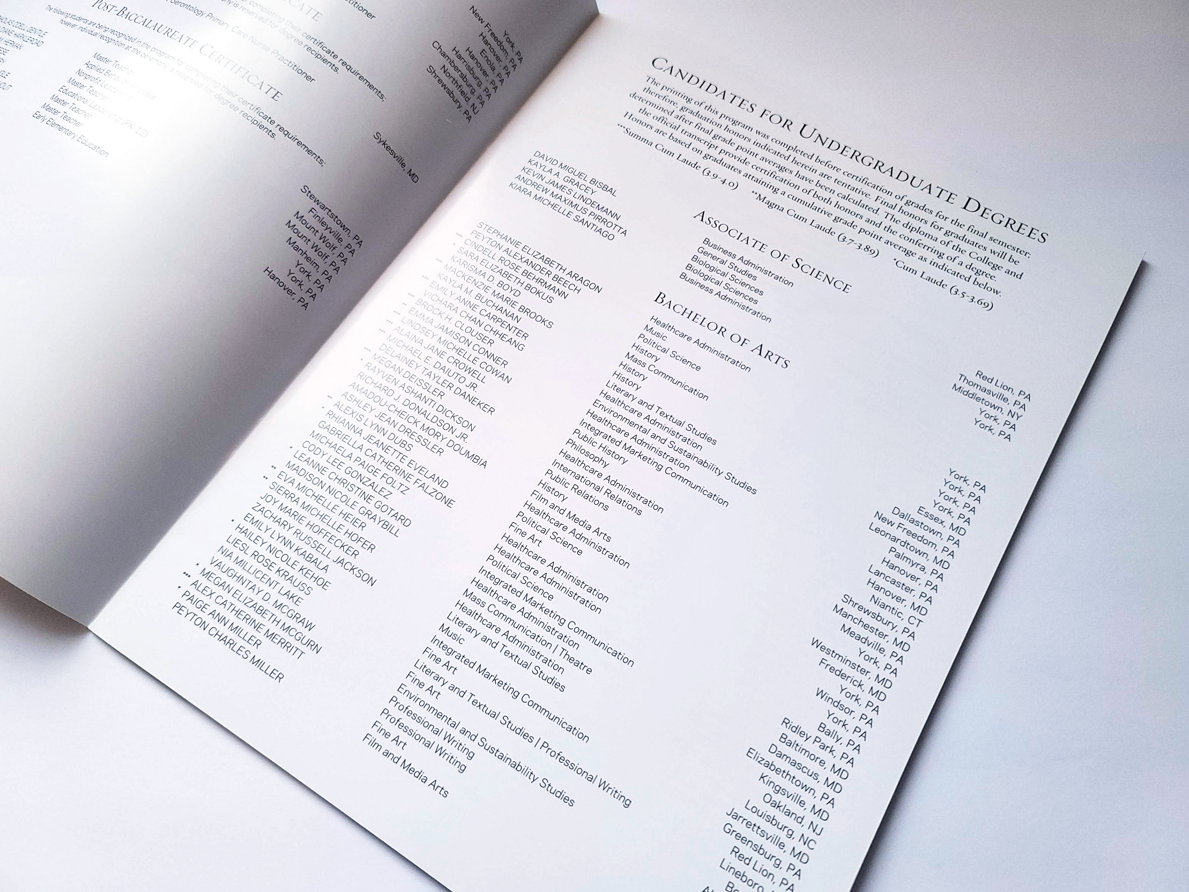 The redesign of the Commencement Program for York College of Pennsylvania
